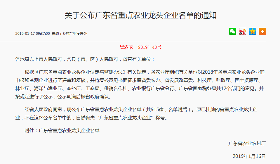 喜讯不断!广东省重点农业龙头企业名单公布啦~经过重重筛选——