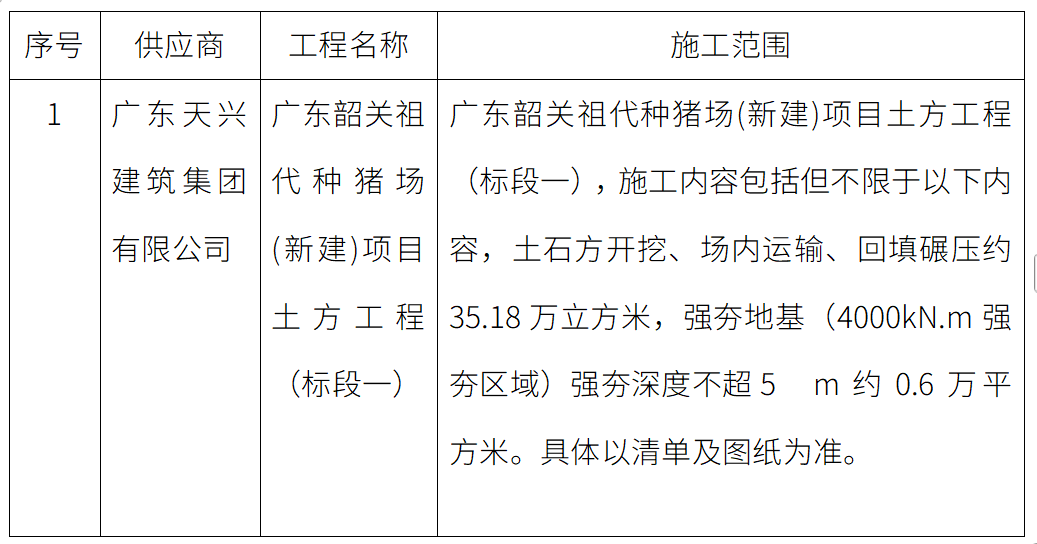 一、项目名称:广东韶关祖代种猪场(新建)项目土方工程(标段一)