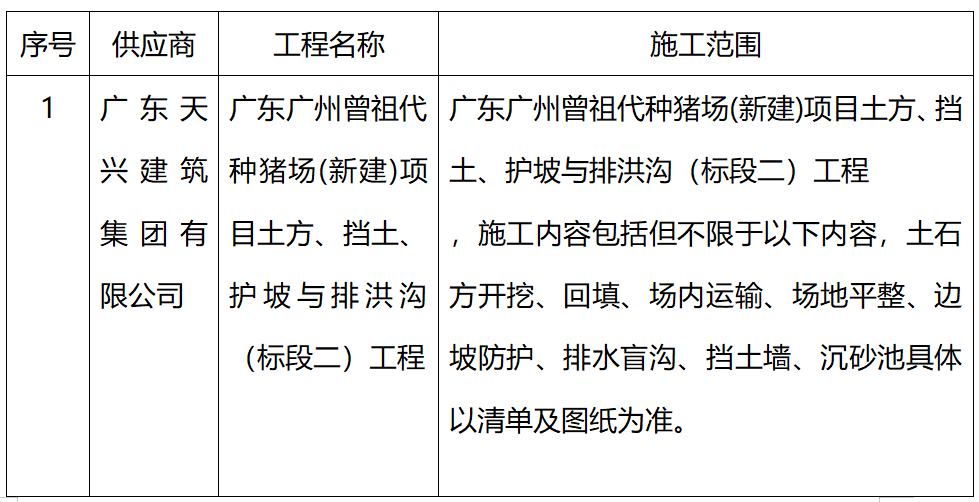 一、项目名称:广东广州曾祖代种猪场(新建)项目土方、挡土、护坡与排洪沟(标段二)工程