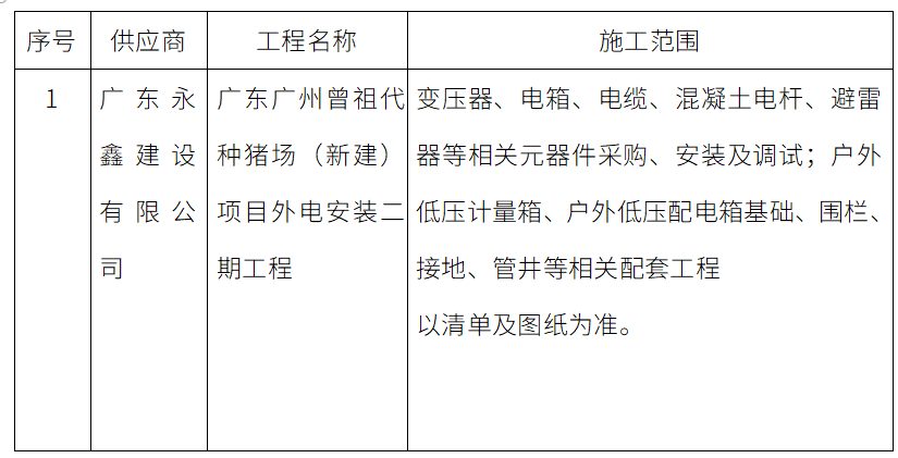 一、项目名称:广东广州曾祖代种猪场(新建)项目外电安装二期工程