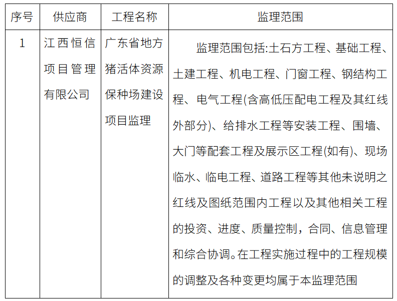 一、项目名称:广东省地方猪活体资源保种场建设项目监理