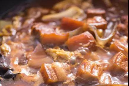 ➃浓醇高汤,渗入食材,加木耳、白菜和粉条再炖30分钟左右;