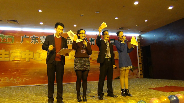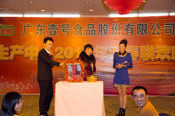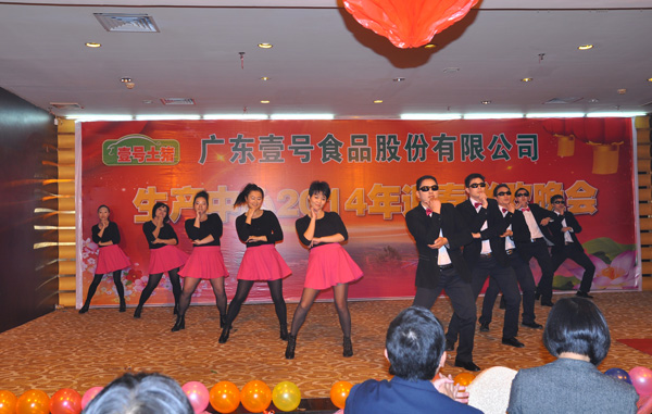 2014年1月20日,壹号食品生产中心2014年迎春晚会在遂溪皇家国际酒店宴会厅举行。黎小兵总经理与各部门、分公司以及生产中心的同事们盛装出席,用歌声与笑语庆祝壹号食品生产中心2013年硕果累累的喜悦之情。