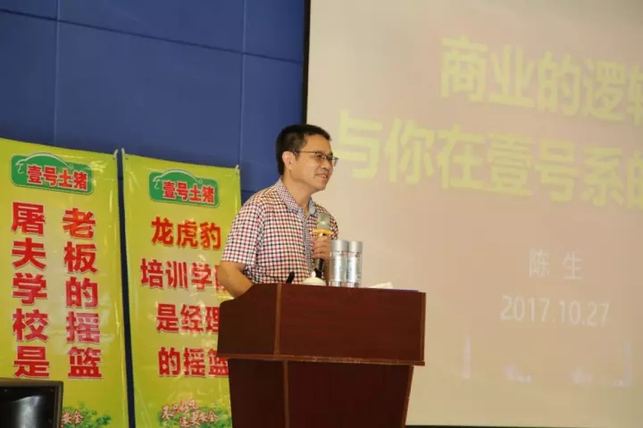 10月27日上午,阳光明媚,壹号土猪品牌创始人、壹号食品董事长陈生于百忙之中亲临培训学院,为在座的营销精英们带来《商业的逻辑与你在壹号系的位置》的专题开讲,为壹号系接下来的工作做了重要的方向指引。