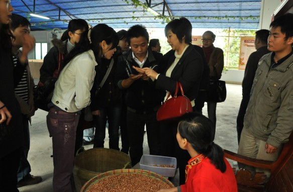 到达农庄以后,大家参观了榨取新鲜花生油、现场碾大米的过程,还走到山坡上近距离观看大片走地放养的土猪和土鸡。每走到一处,黎总经理都先听完讲解员介绍,然后提出完善办法,黎小兵总经理指出,要提高农庄整体服务水平协调好各项工作进程,特别是要狠抓卫生工作,给顾客留下良好印象。