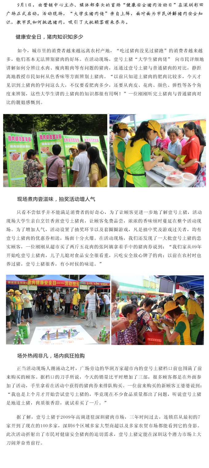 9月1日,由营销中心主办、媒体部牵头的首场“健康安全猪肉活动日”在深圳彩田广场正式启动。