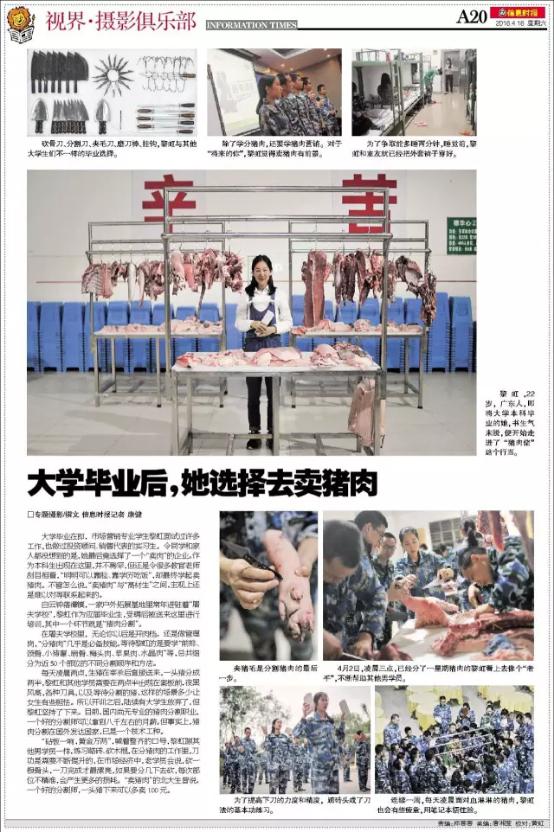 ▲黎虹,22岁,广东人,即将大学本科毕业的她,书生气未脱,便开始走进了“猪肉佬”这个行当,成为培训学院68期学员。