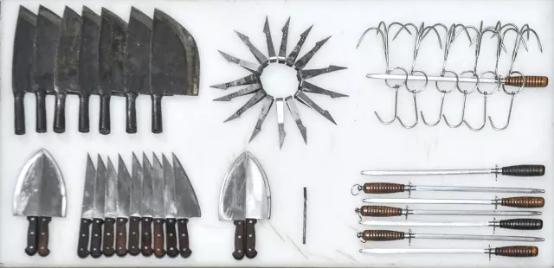 ▲砍骨刀、分割刀、夹毛刀、磨刀棒、挂钩,黎虹与其他大学生们不一样的毕业选择。