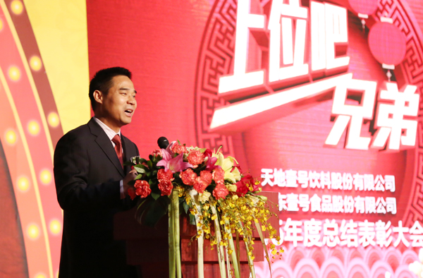 年会现场,陈生董事长发表了重要讲话,陈董首先以“开始膘肥体壮的2015年”为开端,感谢天地壹号、壹号食品的兄弟姐妹们在2015年经济低迷的大环境下再创佳绩,陈董激情致谢:“向天地壹号、壹号食品的兄弟姐妹们致敬!”