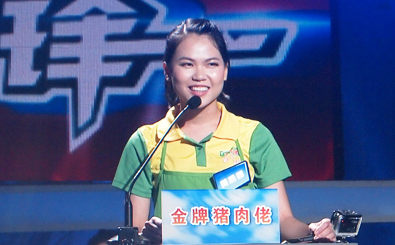 走了一个貂婵,来了一个西施,接下来,由三号选手“猪肉西施”谭翠瑜迎战。