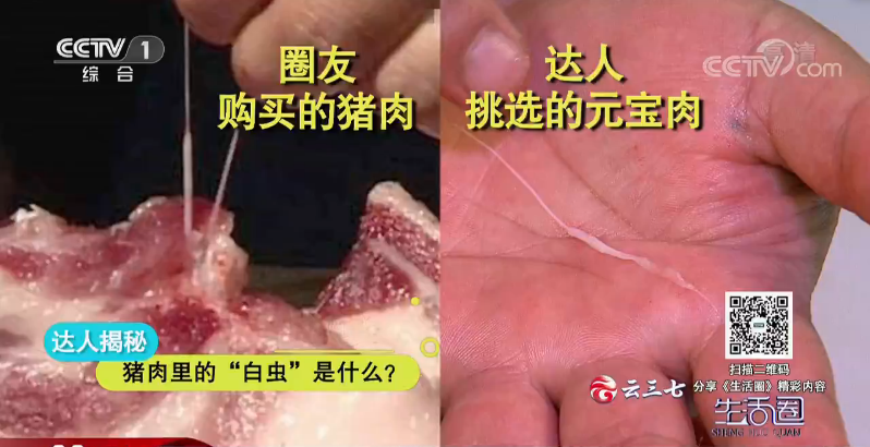 壹号土猪达人、卖了17年猪肉的猪肉哥邢晶,在中央电视台一套的节目里,为我们揭晓这个“白虫”的秘密。