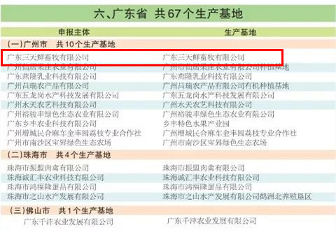 近日,粤港澳大湾区“菜篮子”生产基地(第二批)139 个认定名单公布,广东三天鲜畜牧有限公司成功入选粤港澳大湾区“菜篮子”生产基地。